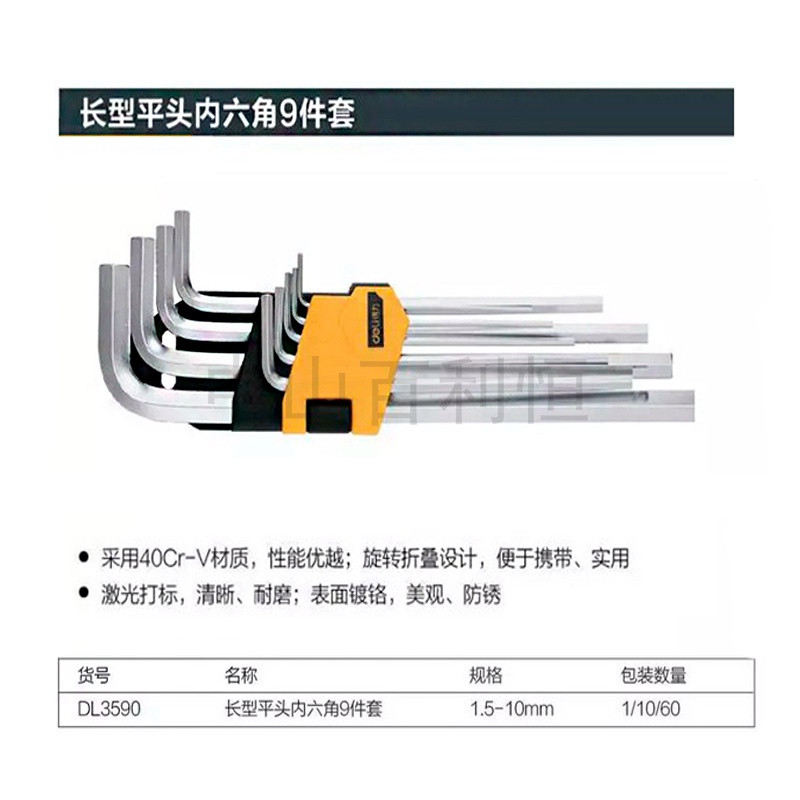 得力   長(zhǎng)型平頭內(nèi)六角--9件套
